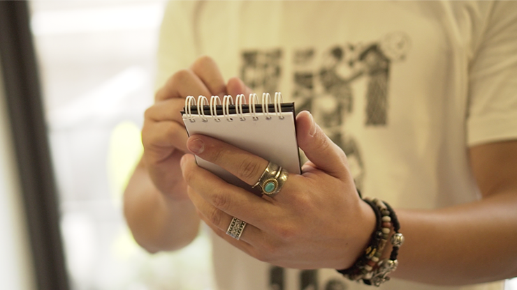 Now, you can blow any spectator's mind with BLACK NOTE. You take out your pad, have the spectator think of their date of birth, the first letter in their name, etc. Then you start to read their mind -- you circle a number on your pad to keep it safe. Now, when they say their number or letter out loud, you've predicted it perfectly - it's an exact match!