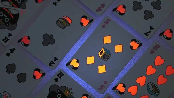 Pink and blue classic color scheme, a cute innovation of a century old classic Bicycle cards. Cow cats and Huskies, directly hitting the hearts of pet lovers. With dog and cat court card designs, and the fluorescent ink, you'll be dealing out a universe of entertainment.
