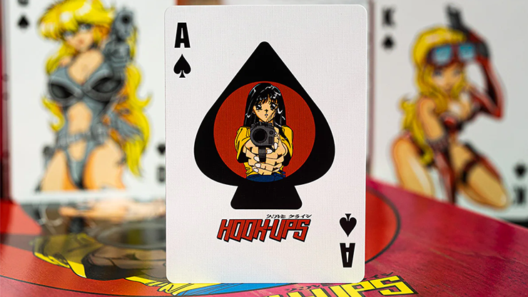 Printed in China on cardistry stock with metallic red hot foil stamping on the card back and the tuck box.