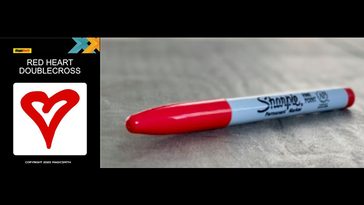 This is the FULL MagicSmith Double Cross pen, but it writes in RED ink from the front, leaves a RED HEART on the spectator's hand, and comes in a RED sharpie marker. Also, the cap at the back of the pen is RED.