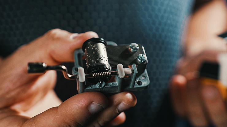 1. Music box: The magician shows a metal hand crank music mechanism and places it inside its box. The spectator then selects one song and when the magician plays the music, it matches the selection! For the big finish the music apparatus vanishes without a trace!