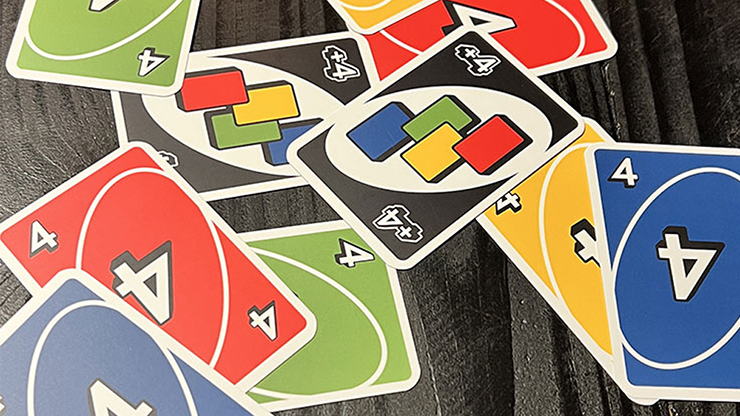 You introduce two sets of 5 cards, using the classic codes and colors of a world famous board game. After shuffling the cards, the spectator and the magician take turns to place their cards on the table. In the end, all the cards match and are in the same order!