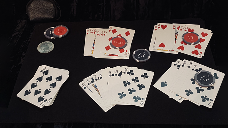 And the icing on the cake: There's a number printed on the chips: 13 on the black ones, and 17 on the red ones. The black cards are counted... there are 13! The red cards are counted... there are 17! And yet it was the spectators who determined these cards... or was it the "talisman" coin?