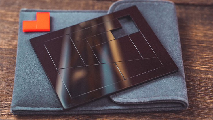 A BLACK puzzle fits perfectly inside of a frame. The performer adds a new small RED piece, and he can rebuild the puzzle! Then he adds another bigger RED piece, and he rebuilds the puzzle again!And these 2 added pieces look like a little RED heart! The puzzle still forms the same exact size rectangle, and it fits perfectly inside the same frame!