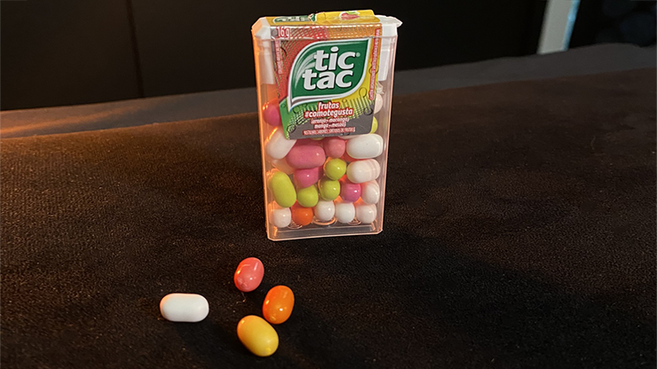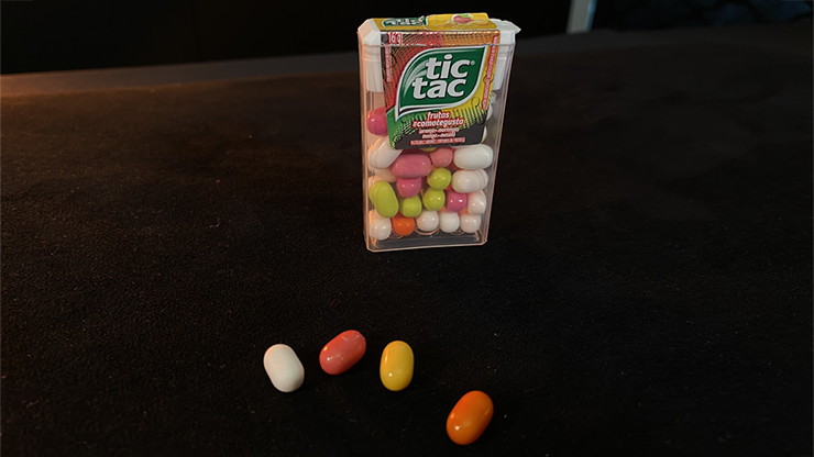 You present the spectator with a box of very popular colored candies (TIC TAC®), and pour some of them into his hand. In a moment, you are going to offer him a unique experience.