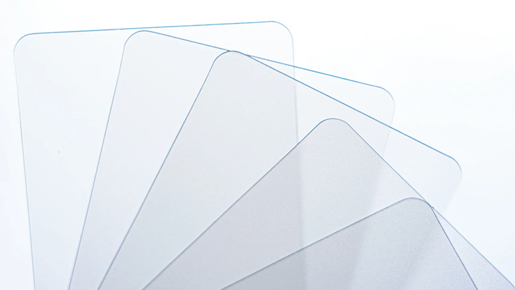Some magicians have tweaked the classic Matrix plot, and others have altered the props to enhance the visual impact. Trans Matrix by Richard Mo, introduced in 2003, replaces playing cards with transparent cards. This alteration allows the audience to clearly witness the coins vanishing or teleporting beneath the cards in an instant, creating a heightened visual effect.