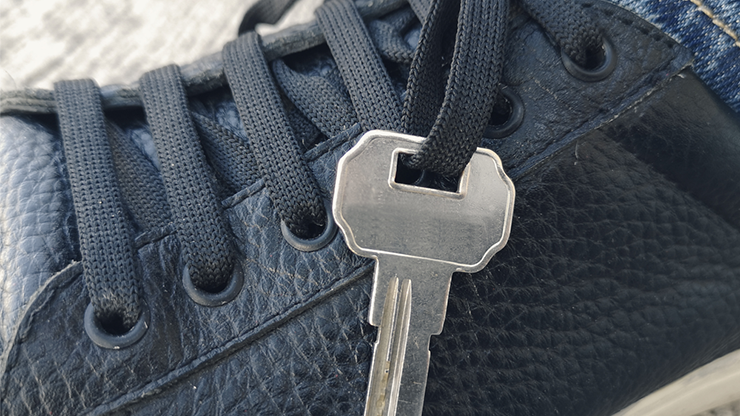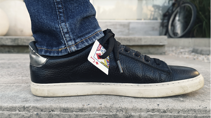 From the mind of Jota, a new idea where the illusionist clearly takes the corner of a card, ring or key, and in less than a blink of an eye makes it travel from his hands ... to his shoelaces! And truly tied!