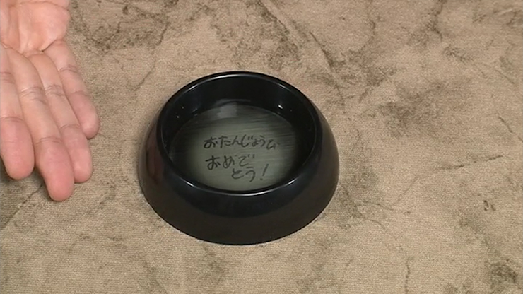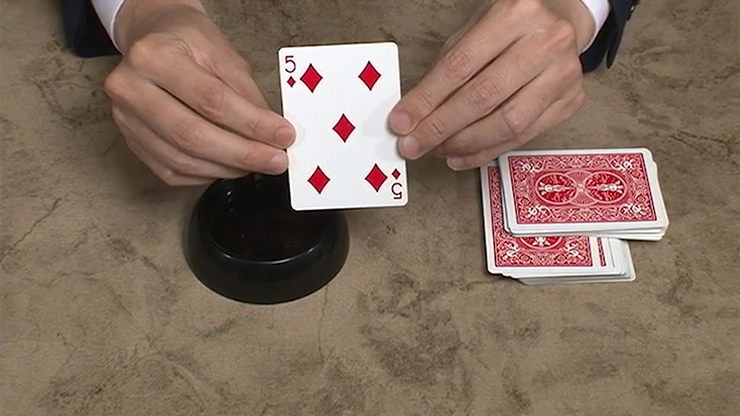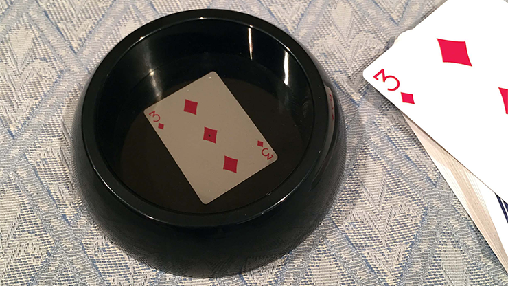 A spectator selects a card from the deck, and remembers it. The magician pours water into a container, and asks the spectator to concentrate on her card as she gazes at the water surface. An image of the selected card magically appears below the water's surface!